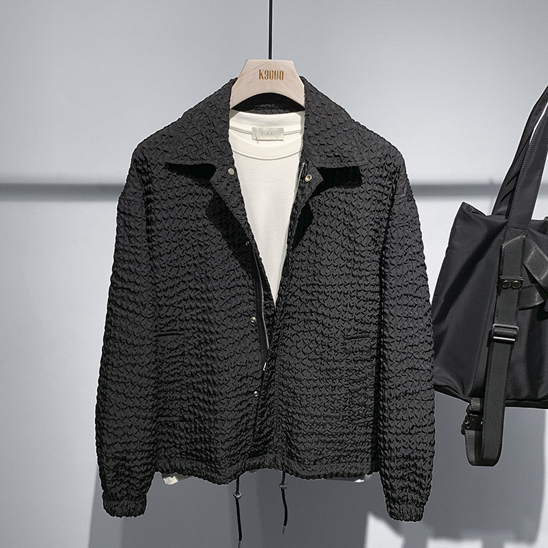 春の夏のジャケットの男性のファッションは襟のゆったりした長袖のコートをめくります。