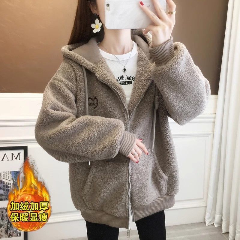 女性帽子とベルベットの女性コート2023年の新型起爆秋冬女装はカーディガンの子羊の毛を厚くした