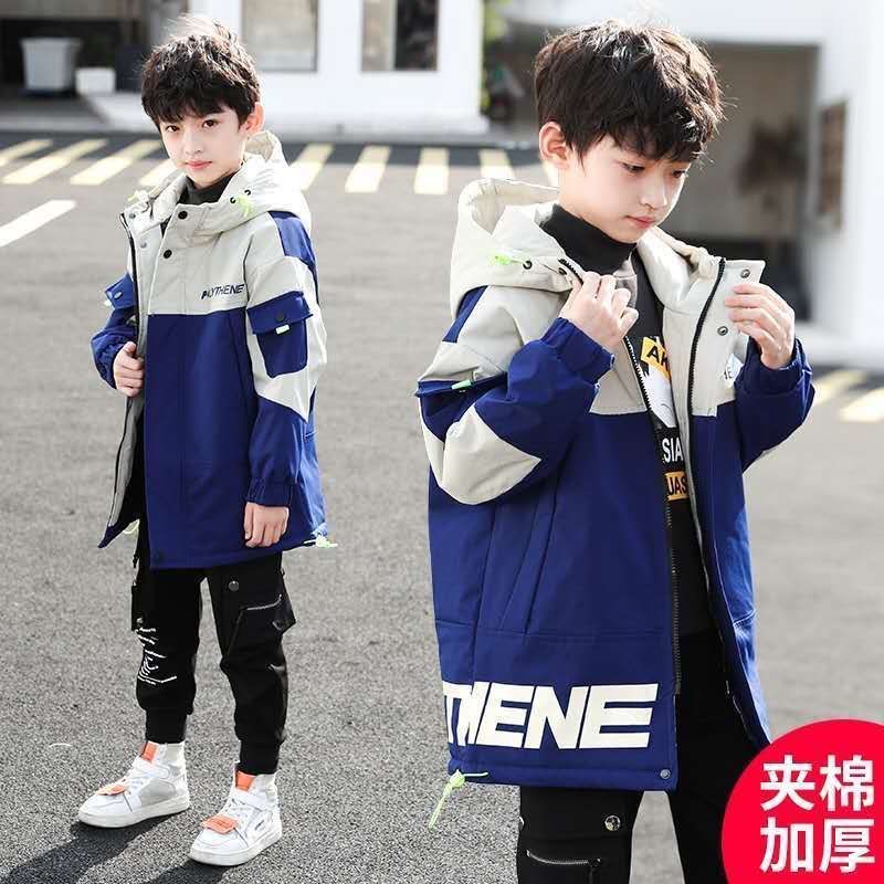 子供服の男の子と子供のベルベットの厚手のウインドブレーカーの子供の中で長いファッションコートの中で子供の秋冬と綿の厚手の冬服