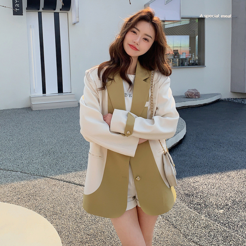 2024春秋の新型スーツのコートの女性大衆のデザイン感が色にぶつかって痩せているスーツの上着のコートが爆発した
