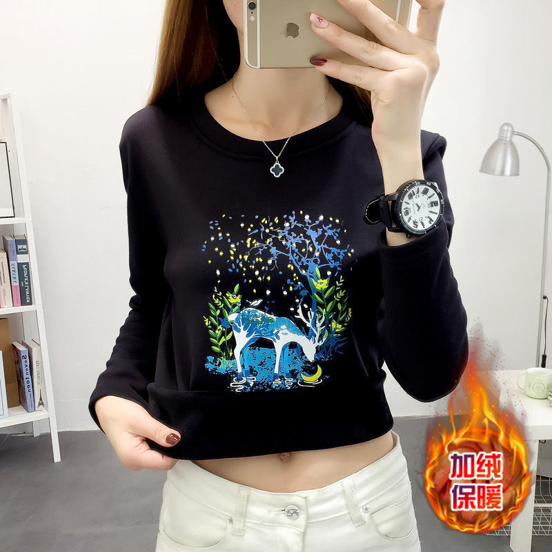 ベルベットの厚いシャツの女性一体ベルベット秋冬の新しい上着の保温太った妹の中に長袖tシャツの女性の潮がついている