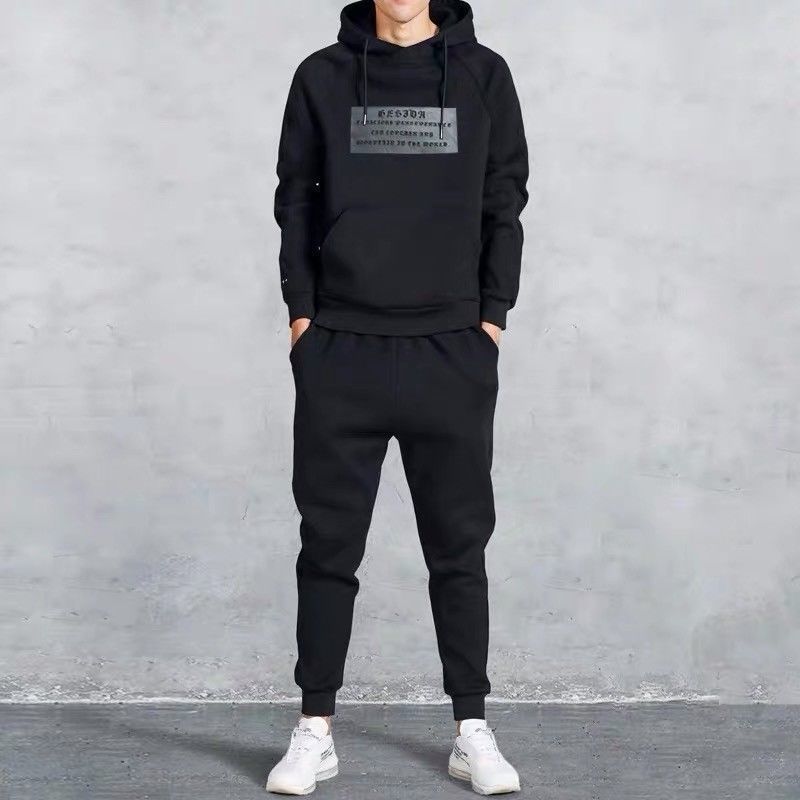 男性の秋冬はかっこいい秋の服と帽子付きの三点セットのファッションとベルベットの服のスポーツセットの男性服のコートです。