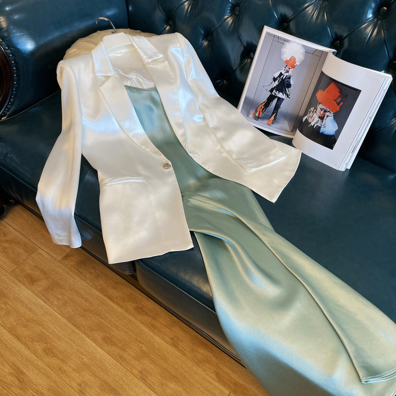高級感のハンサムな揚げ物のスーツの婦人服の春秋輸入の酢酸のスーツのサスペンダーのスカートの2つのセットは高級な気質を詰めます。