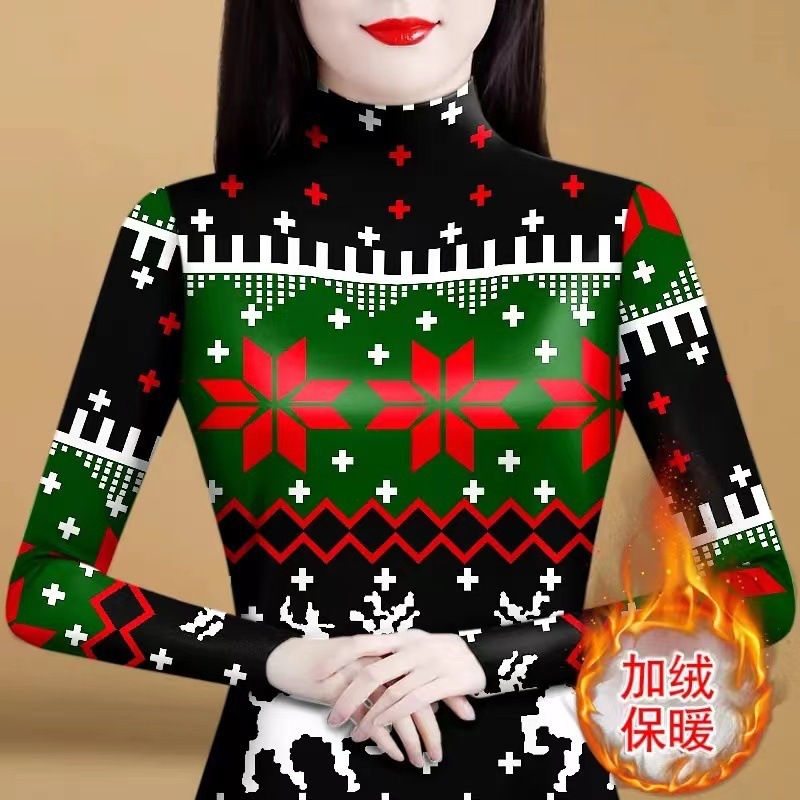 半高襟のベルベットのシャツの女装秋冬の新しい洋気プリントの中高年の修身の中にブラウスの上着を着ます。