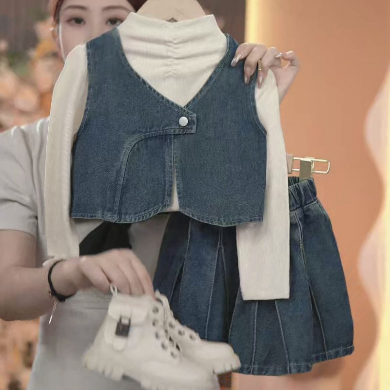 女の子春服セット2023新型長袖子供服セット子供秋服デニム秋冬洋気三点セット