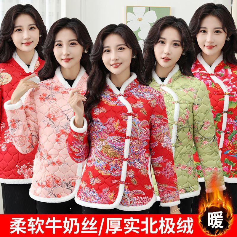 新しい秋冬の綿服の上着のコートのネットの赤い色の復古の中国風の絹糸の大きいサイズの綿入れの上着の女性のお母さんは上着を詰めます。