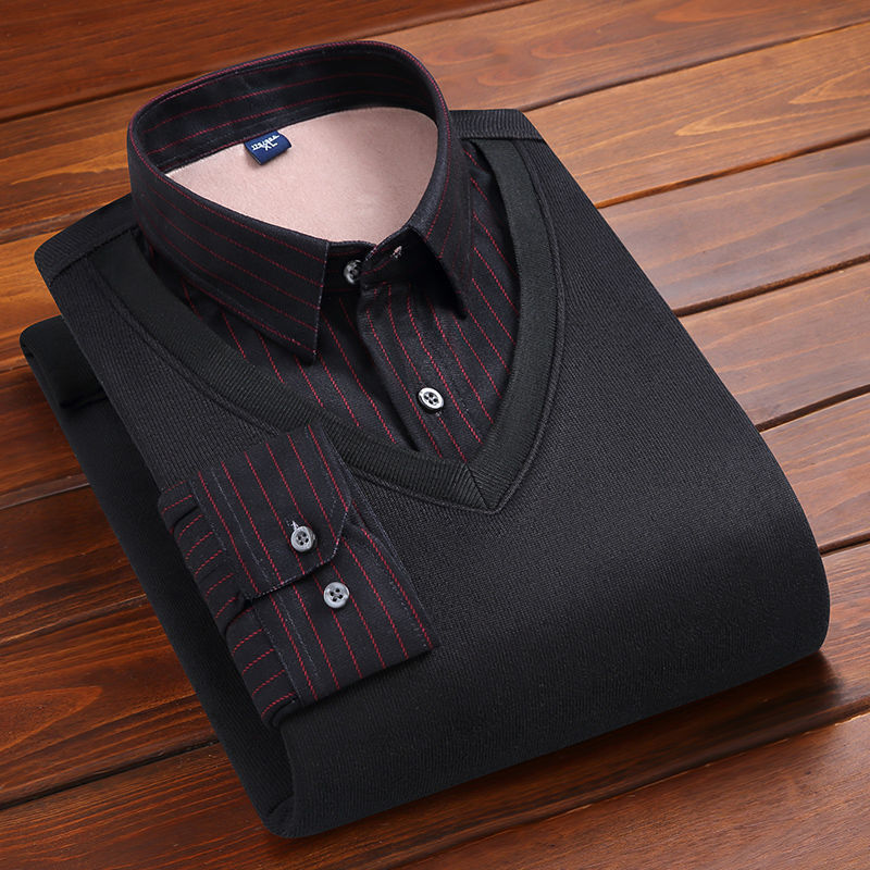 冬の男性の偽の2つのベルベットは、シャツの襟のセーターの中で青年の保温ニットウェアを厚くします