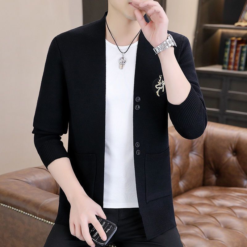 高級メリヤスカーディガン男性コート秋新作百合長型セーター