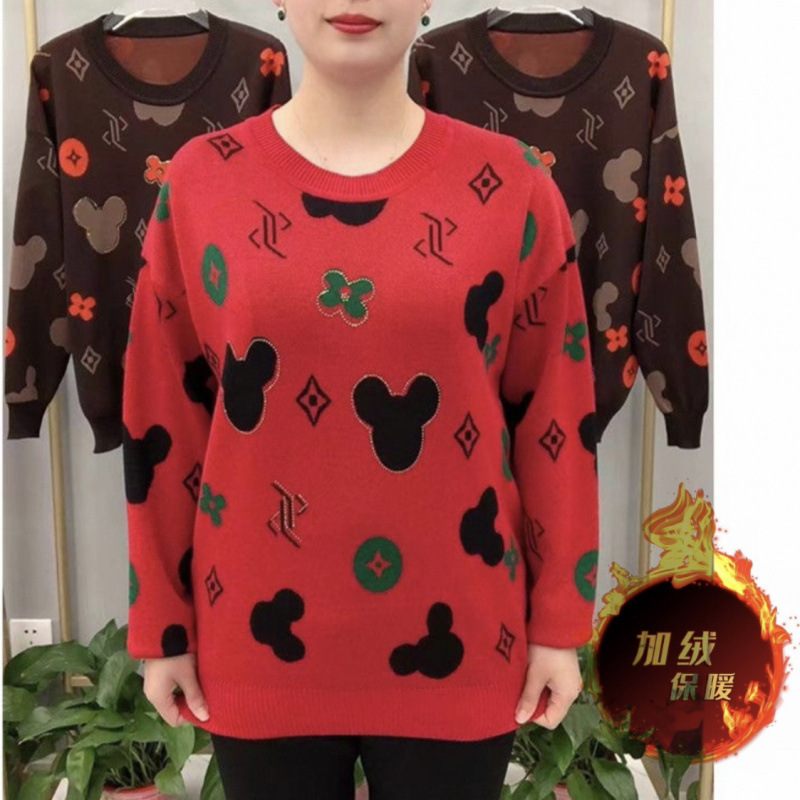 秋冬のゆったりした中高年のお母さんは新型の婦人服の長袖の丸首のファッションとベルベットの保温の底のシャツの上着を詰めます。