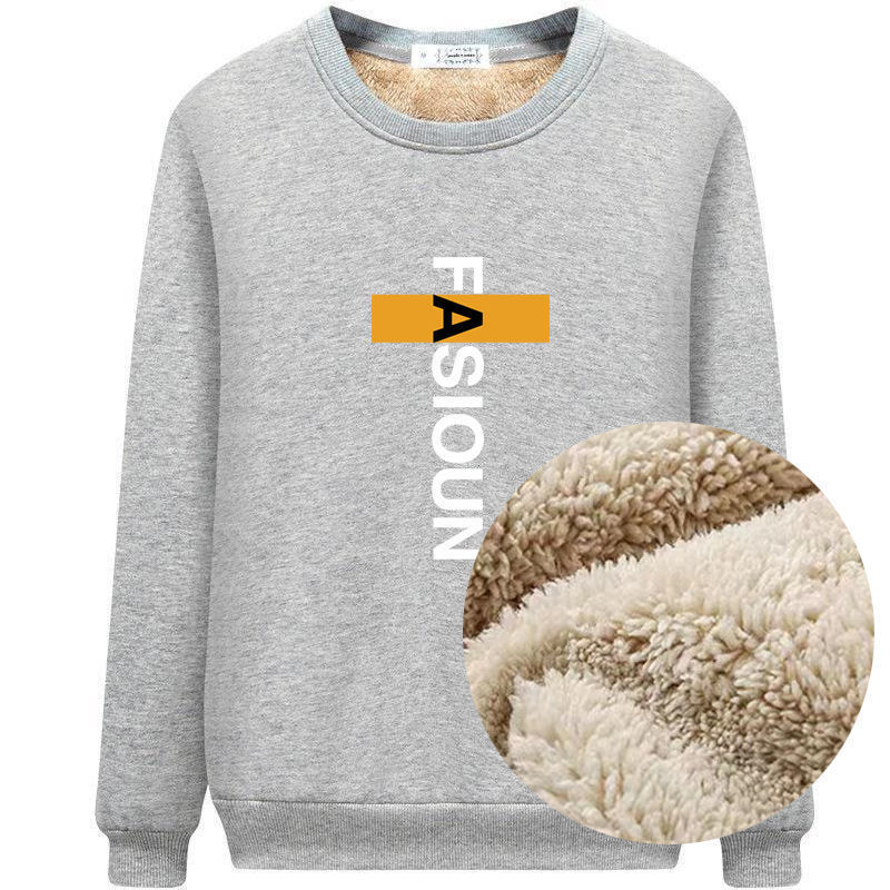 百合コート男性スウェット-冬の子羊のベルベットとベルベットの厚い丸首スウェット男性のゆるいシャツ