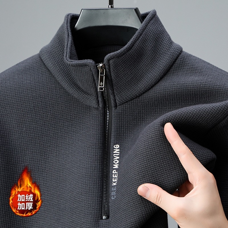 ベルベットは高襟のカジュアルなガーディアン男の冬の保温半ファスナー2023の新しいファッションジャケットtシャツ男を厚くした