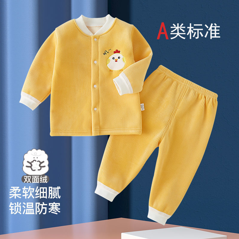 赤ちゃん保温服セット赤ちゃんとベルベットが厚くて暖かい春と秋の冬の秋の服のパジャマ