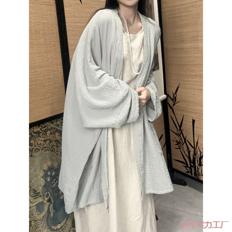 カーディガンの女性夏ラミー麻の袖なしのワンピースと綿糸のコートの2つのセットの清冷感がゆったりしています。