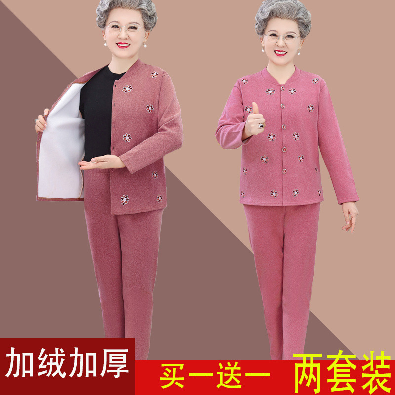 お母さんの保温下着の女性の上着にズボンとベルベットを入れて保温下着のカーディガンの中高年のおばあちゃんのスーツを厚くします