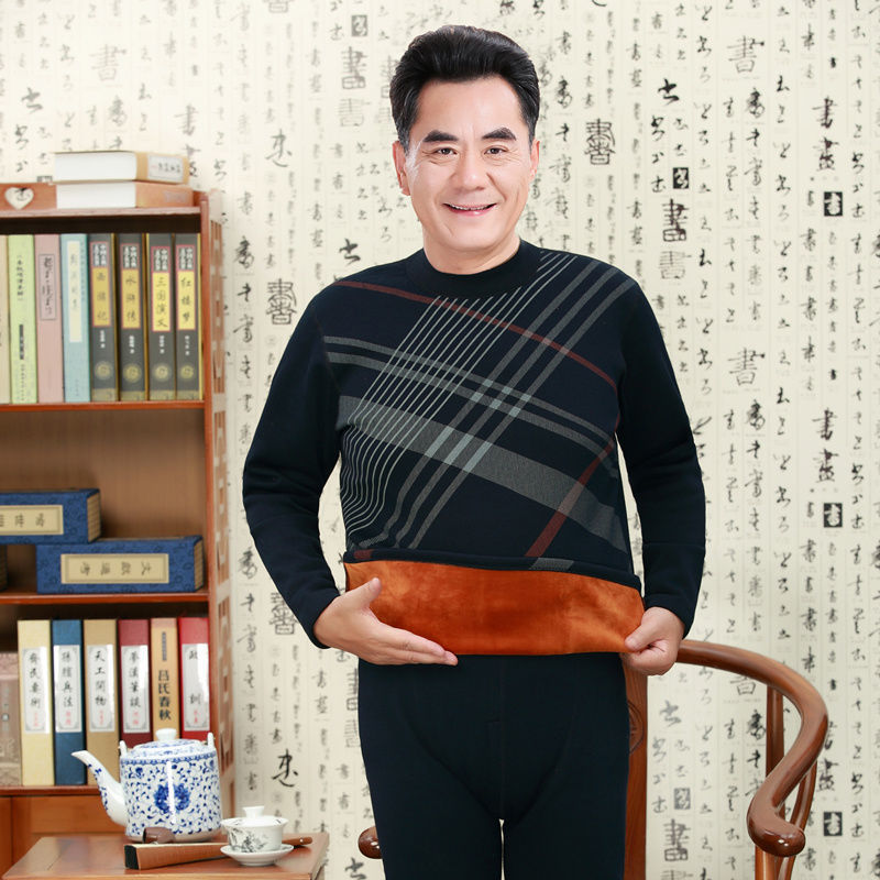 黄金の毛の保温の下着の男性の厚い加毛の秋の服のズボンの大きいサイズの中高年の防寒の保温の底のスーツ