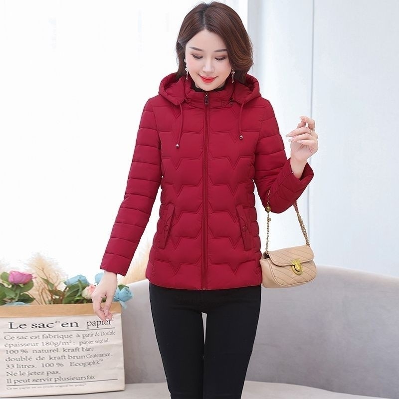新型の綿服の女性の短い帽子付きの厚手の綿入れの服の薄い韓国版の修身はやせている小さい綿入れの大きいサイズの冬のコートを現します。