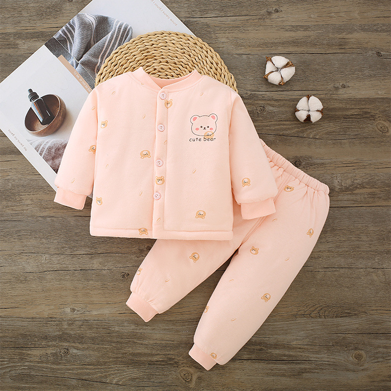 ベビー子供用綿入り保温服セット秋冬中厚タイプの男女赤ちゃん純綿下着の薄い綿の分体