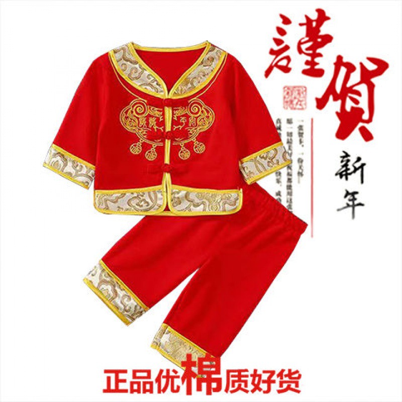 春と秋の赤ちゃんの満1歳のドレス中国風満月の百一日の満1歳は周のチャンピオンの唐をつかんで新年の服を詰めます。