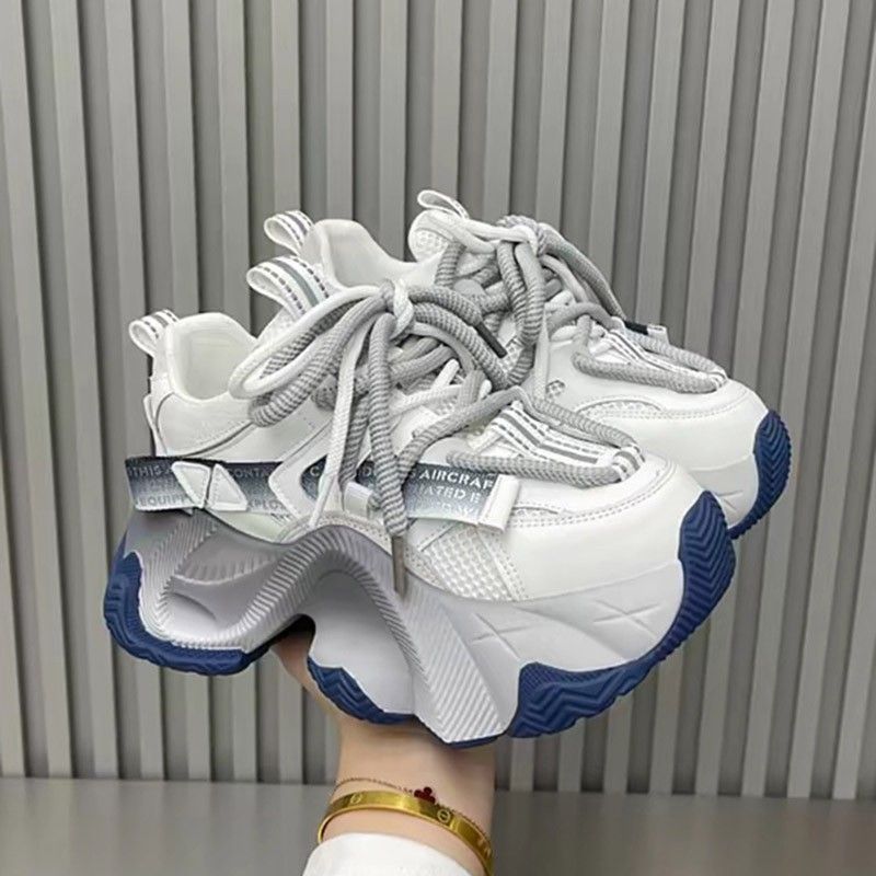 ヨーロッパ駅の本革ネットの厚い底のお父さんの靴の女性の2024の新型の通気性の百合のストラップの松の餅の運動のカジュアルシューズ