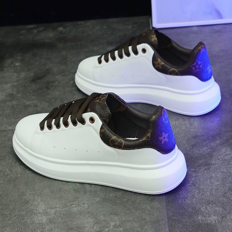 2023新型文麦昆プリント白靴女性カップル学生ファッションスポーツレジャー男靴百合増高靴