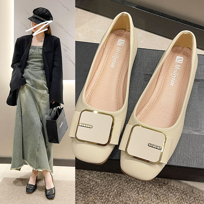 【牛筋軟底】太ヒール靴女2024新作作業靴百合小香風スカート豆靴女