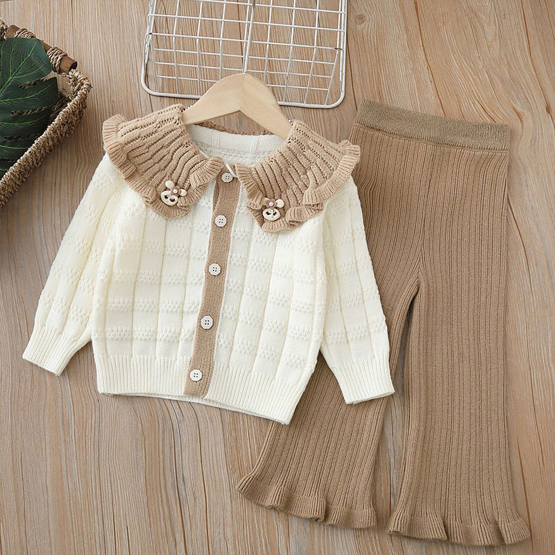 女の子セーター2点セットニットジャケット2023秋冬新作手作り花少女大襟カーディガン毛糸
