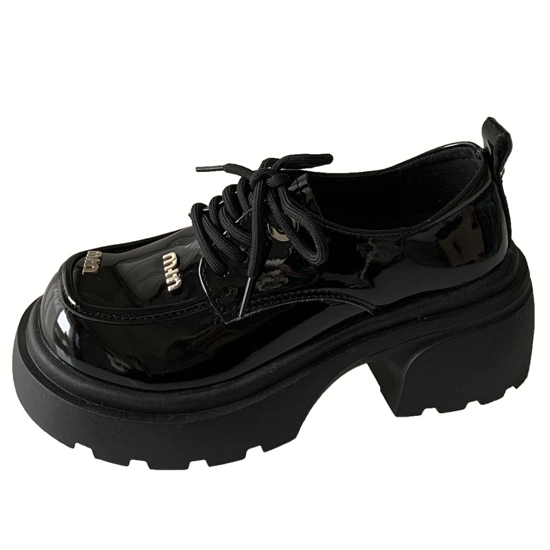 白いひも付きの小さい靴の女性2024春の新型はレトロな英倫風の厚い底が高くなります。