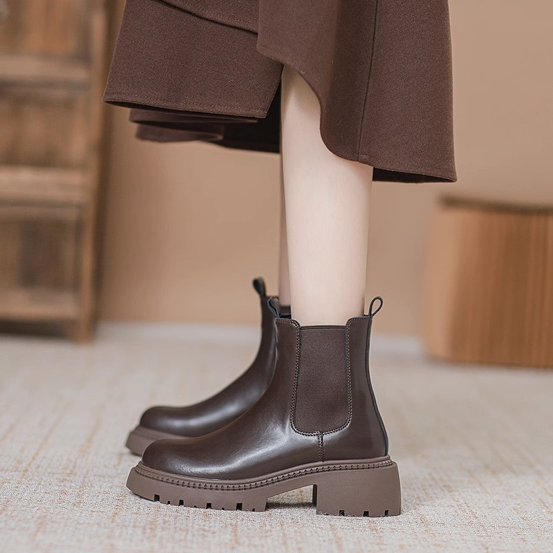 茶色のチェルシーブーツの女性2024の新しい英倫風ショートブーツ潮春秋シングルブーツの厚い底のマーティンブーツのタバコブーツ