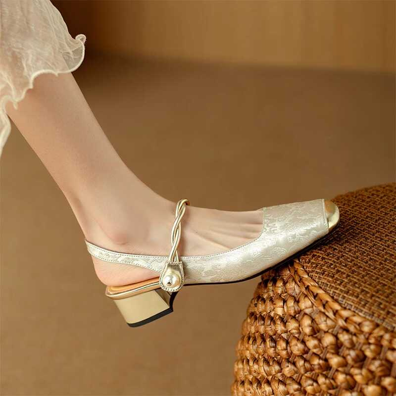 新国風とスカートのハイヒールの女性の太さと高級感の夏の気質のメアリー珍靴のフレンチサンダルの女性の靴