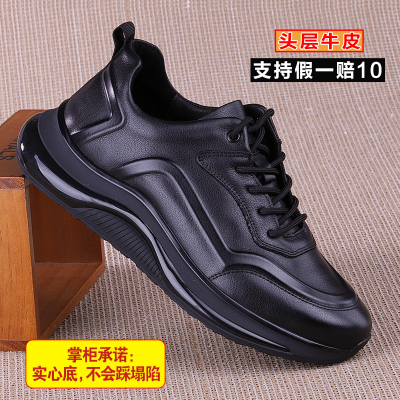 外国貿易の男性の靴の秋の頭の層の牛革の全黒の運動靴の男性の厚い底はカジュアルな靴のランニングシューズを結びます。