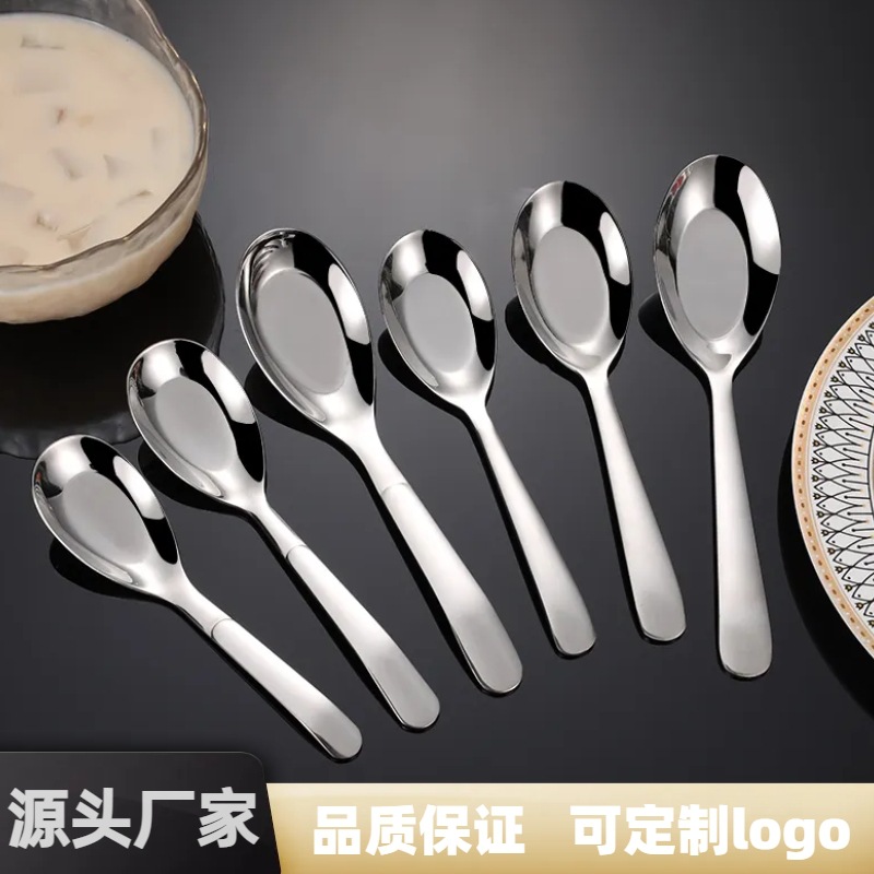 卸売り316非磁性ステンレス平底スプーンホテル食堂の長柄が厚くて、子供が食事をしてスプーンを飲む