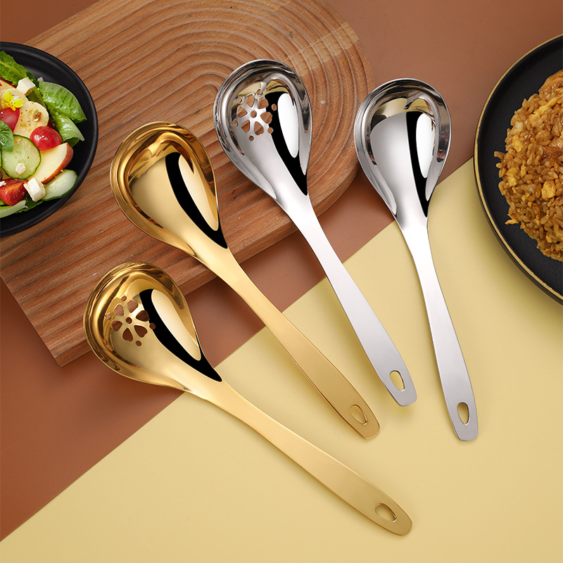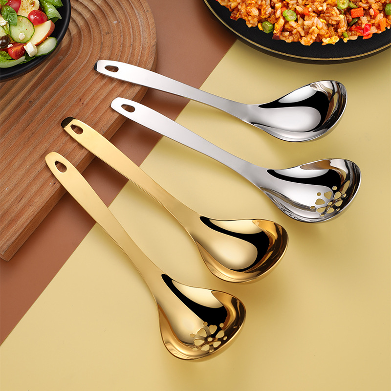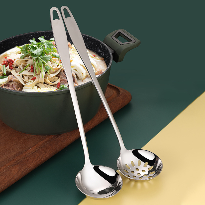 304ステンレススプーン卸売りホテル家庭用長柄スープ殻盛湯鍋スプーンは吊り下げ式で深いスプーンを入れることができる