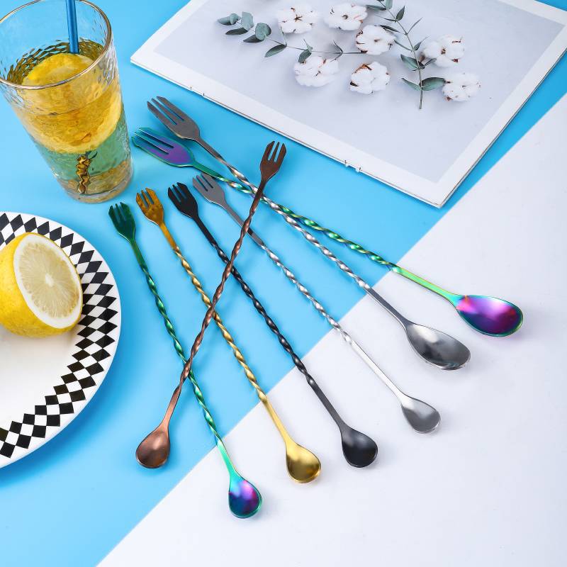 オーダーメイドステンレス撹拌スプーンダブルヘッド総柄バーミルクティーバー工具コーヒーカクテル調製アイススプーン