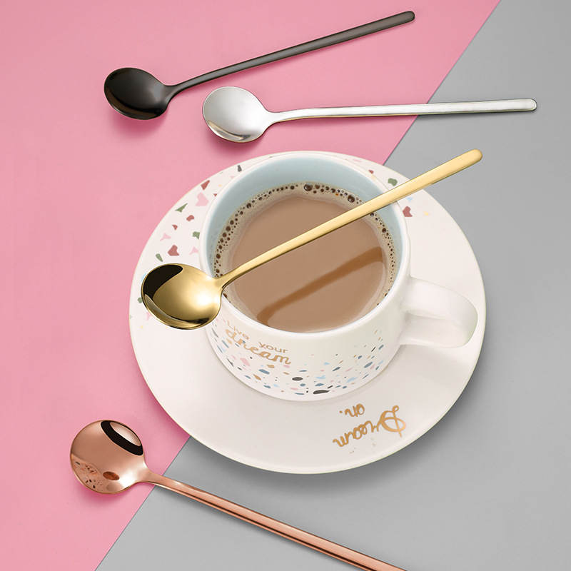卸売り韓国式スプーンステンレス高颜値ネット赤生中継品付き長柄フォークスプーン6点プレゼントセット