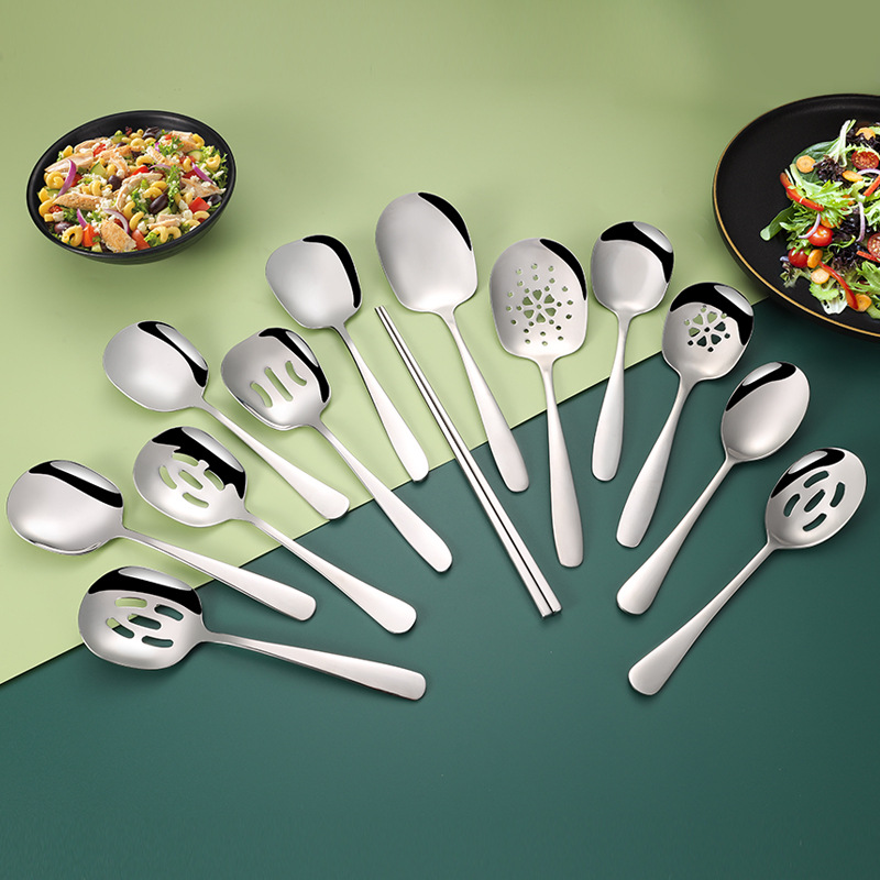 カスタム卸売り304ステンレス共通スプーンホテルレストラン自助分菜スプーン大スプーン食堂分食スプーン