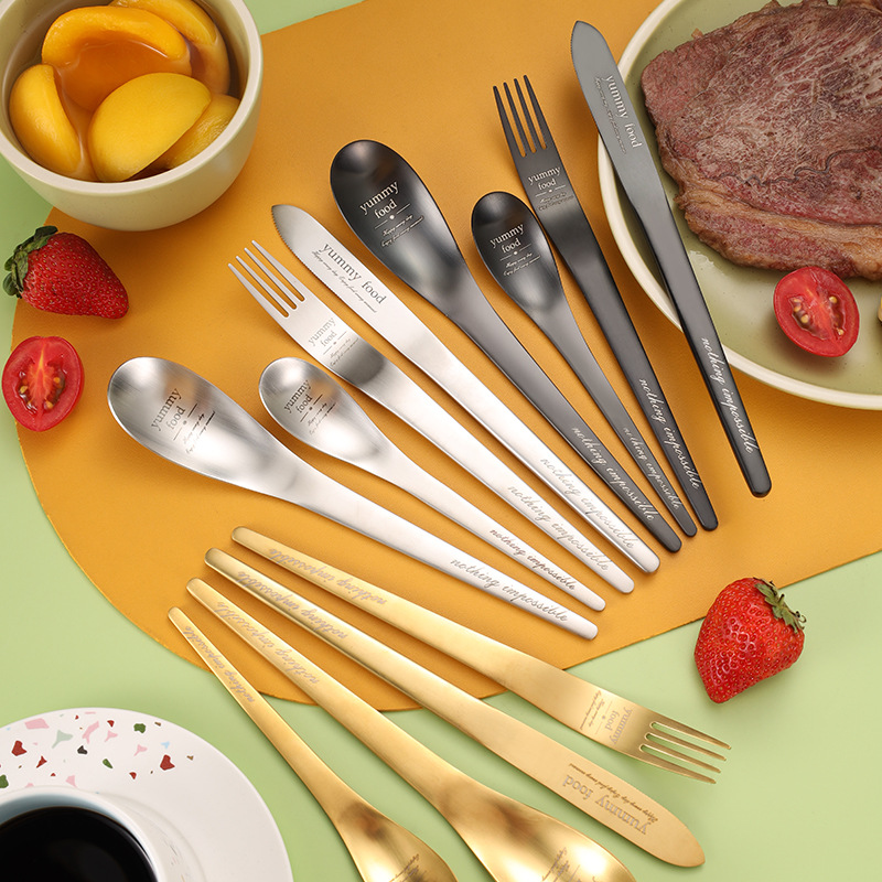 316 ステンレス鋼マットナイフ、フォーク、スプーン卸売ホテル家庭用厚みのあるデザートスプーン洋食ギフトステーキナイフとフォーク