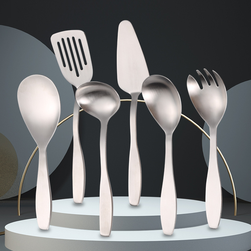 卸売り304ステンレススープスプーン韓国式砂光中空ハンドル屋外ミニケーキシャベルサラダ分菜スプーン
