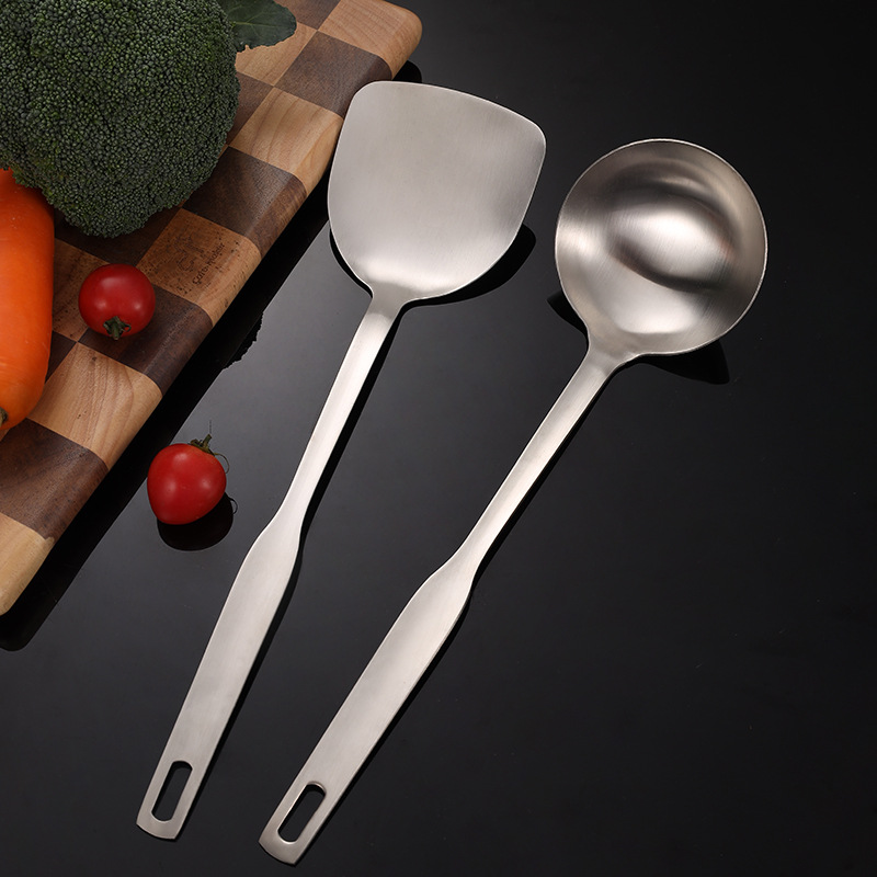 卸売り非磁性ステンレス鍋シャベル厚さ伸線炒め料理スプーン粥スプーンプレゼント調理器具セットはロゴを付けることができる