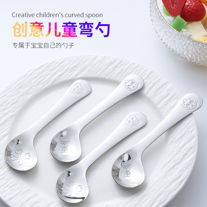 304ステンレススプーンクリエイティブかわいい漫画猫犬曲げスプーン食事スプーントレーニングスプーン子供ギフトスプーン