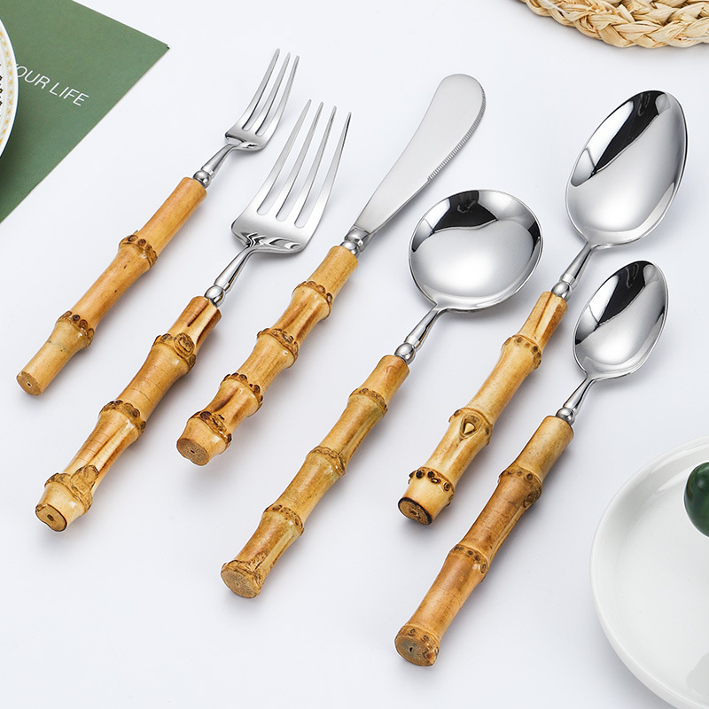 304 ステンレス鋼のナイフ、フォーク、スプーン卸売ホテル天然竹厚みのある食器西洋デザートスプーンステーキナイフとフォーク