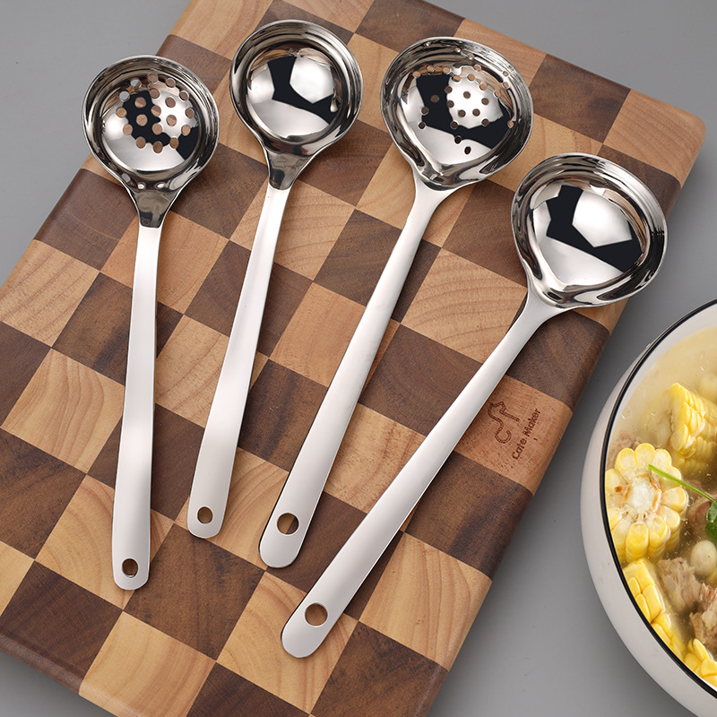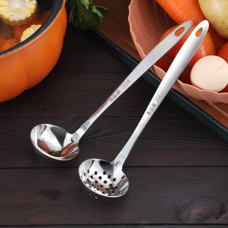 卸売りステンレス日本式大漏スプーンホテル家庭用深長柄すくい面食品餃子スプーン台所濾過スプーン