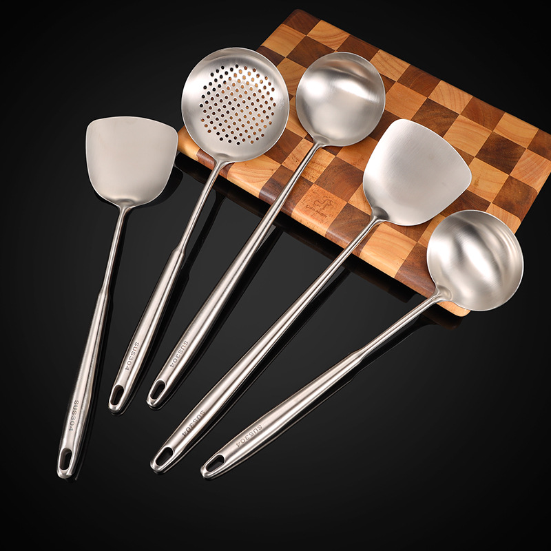 卸売り非磁性ステンレス鍋シャベル厚さ伸線炒め料理スプーン粥スプーンプレゼント調理器具セットはロゴを付けることができる