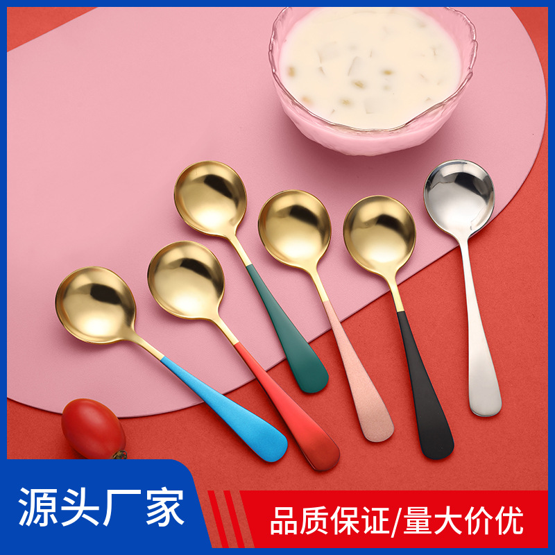 304ステンレススプーン卸売りホテル家庭用長柄厚いデザートコーヒースープ子供ご飯丸スプーン