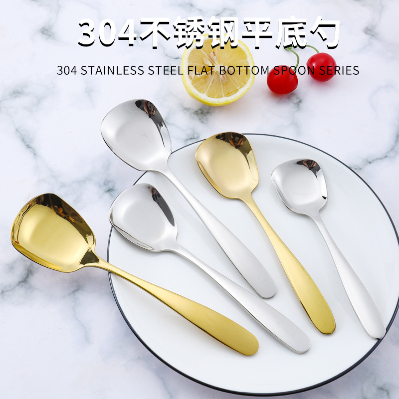 卸売り304ステンレス角平底スプーンホテル家庭用厚手スープ学生もち食事スープスプーン