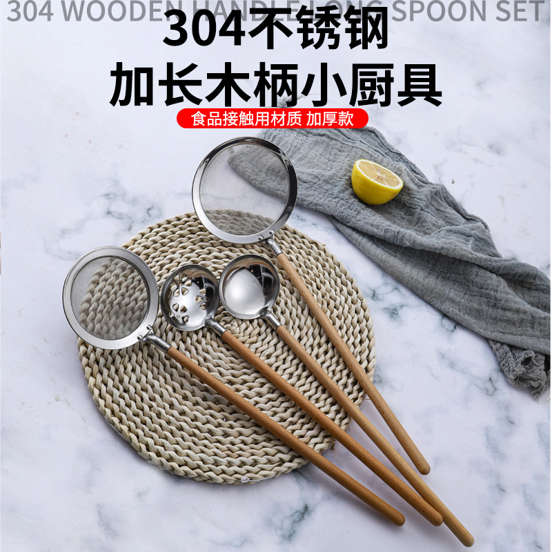 卸売り304ステンレススプーンホテル家庭用日本式ケヤキ延長網漏れろ過スープ漏れ鍋スプーン