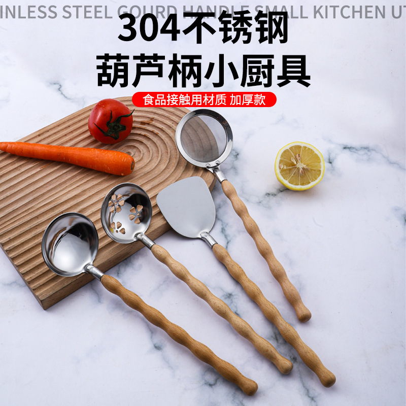 304ステンレスの鍋はホテルの家庭用のヒョウタンの実木の多機能の鍋をすくってスプーンを濾過してスプーンを濾過します。