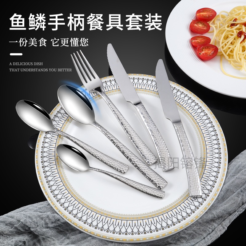 クロスボーダー卸売304ステンレスナイフフォークスプーンホテルギフト魚鱗紋厚いデザートステーキナイフコーヒースプーン