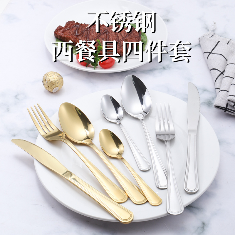 国境を越えたステンレスナイフフォークスプーン卸売り1010二重線ホテル家庭用厚いステーキナイフフォーク甘いコーヒースプーン
