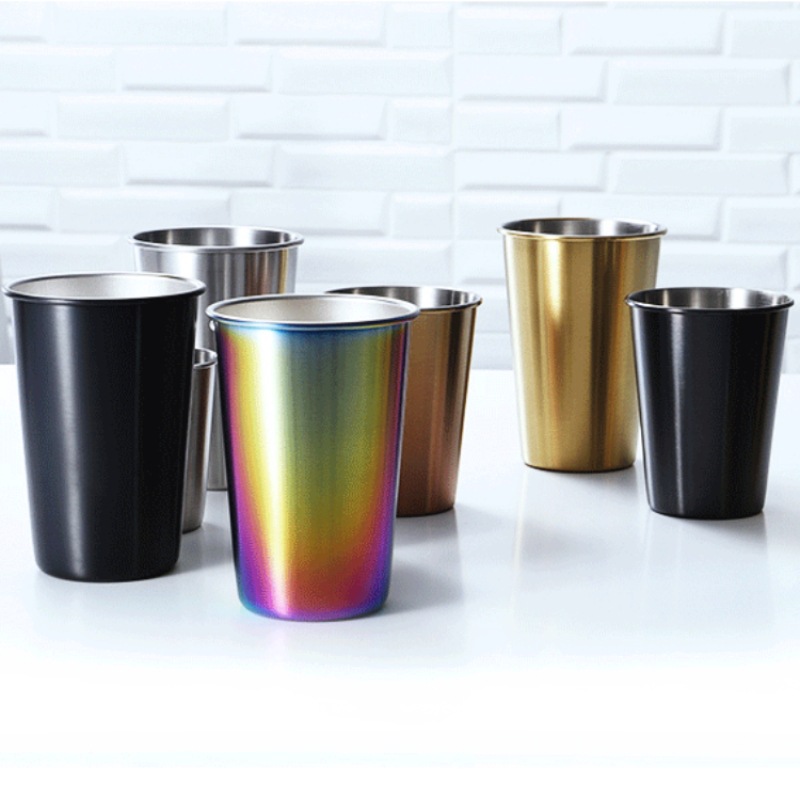 カスタム304ステンレスビールグラス単層厚さ防止コーヒー飲料カップ蓋付きストロー付き冷たい飲料カップ