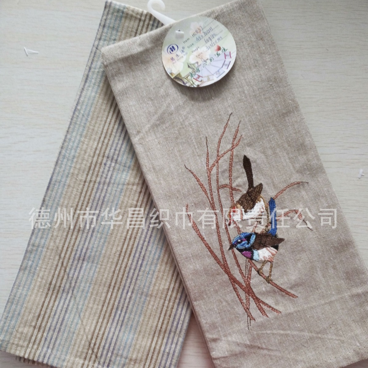 メーカー綿刺繍茶巾刺繍模様とロゴ